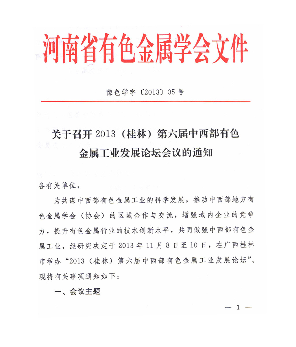 关于召开2013(桂林)第六届中西部有色金属工业发展论坛会议的通知