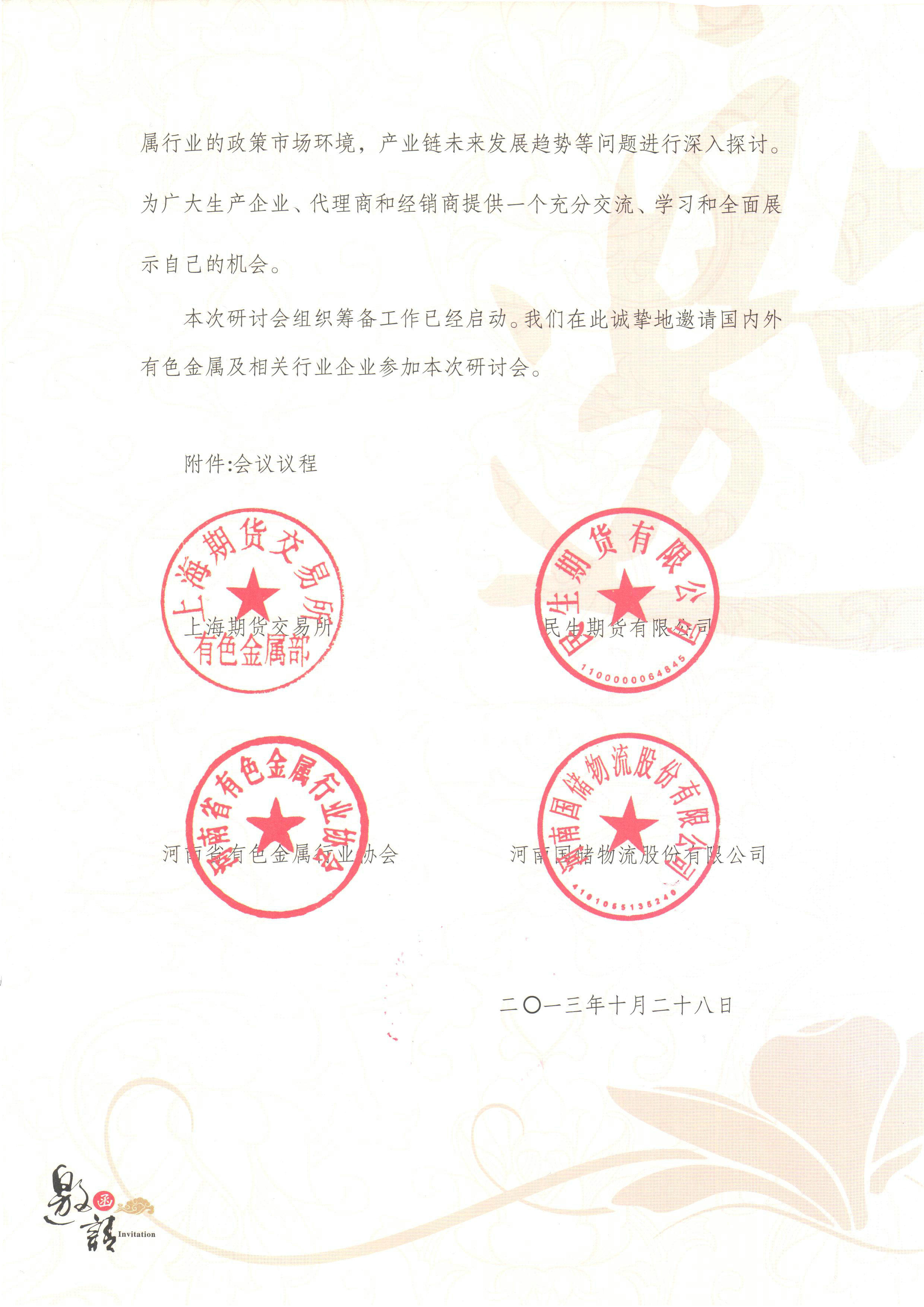 首届中原地区有色金属行业期现结合研讨会邀请函
