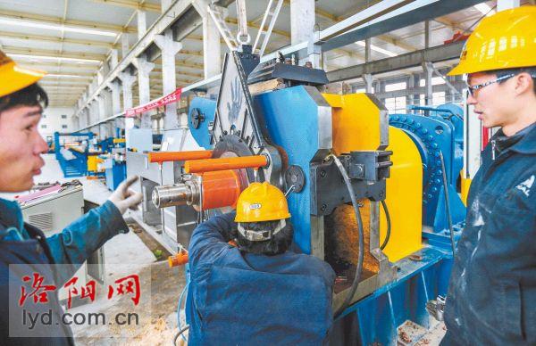 昨日,记者在宜阳县产业集聚区洛铜宜阳工业园的铜挤压车间看到,该工业园首条生产线已经安装调试完毕,工人们正在进行试生产。