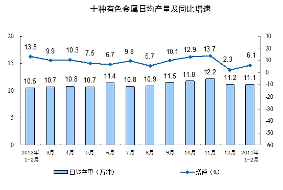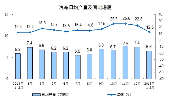 分行业看,1-2月份,41个大类行业中有39个行业增加值保持同比增长。其中,农副食品(行情 专区)加工业增长9.3%,纺织业增长6.9%,化学原料和化学制品制造业增长12.0%,非金属矿物制品业增长10.5%,黑色金属冶炼和压延加工业增长6.8%,有色金属(行情 专区)冶炼和压延加工业增长13.4%,通用设备制造业增长11.0%,专用设备制造业增长12.1%,汽车(行情 专区)制造业增长15.5%,铁路、船舶、航空航天和其他运输设备制造业增长8.0%,电气机械(行情 专区)和器材制造业增长11.9%,计算机、通信和其他电子设备制造业增长8.9%,电力、热力生产和供应业增长3.3%。
