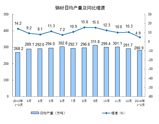 2014年1-2月份规模以上工业生产主要数据