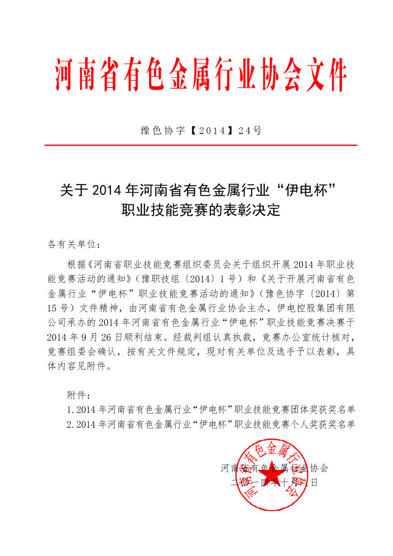 2014"伊电杯"职业技能竞赛表彰决定