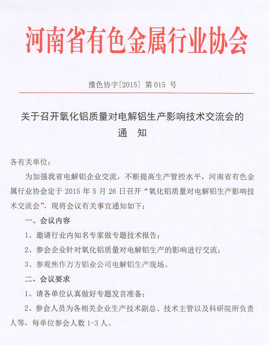 关于召开氧化铝质量对铝电解生产影响技术交流会的通知