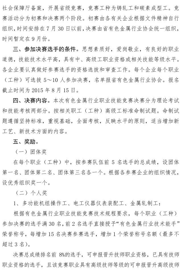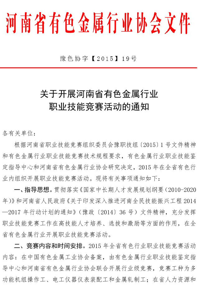 关于开展河南省有色金属行业职业技能竞赛活动的通知.pdf
