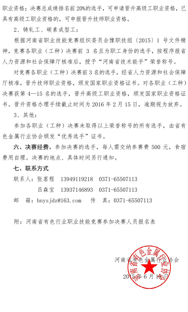 河南省有色行业职业技能竞赛参加决赛人员报名表.xls