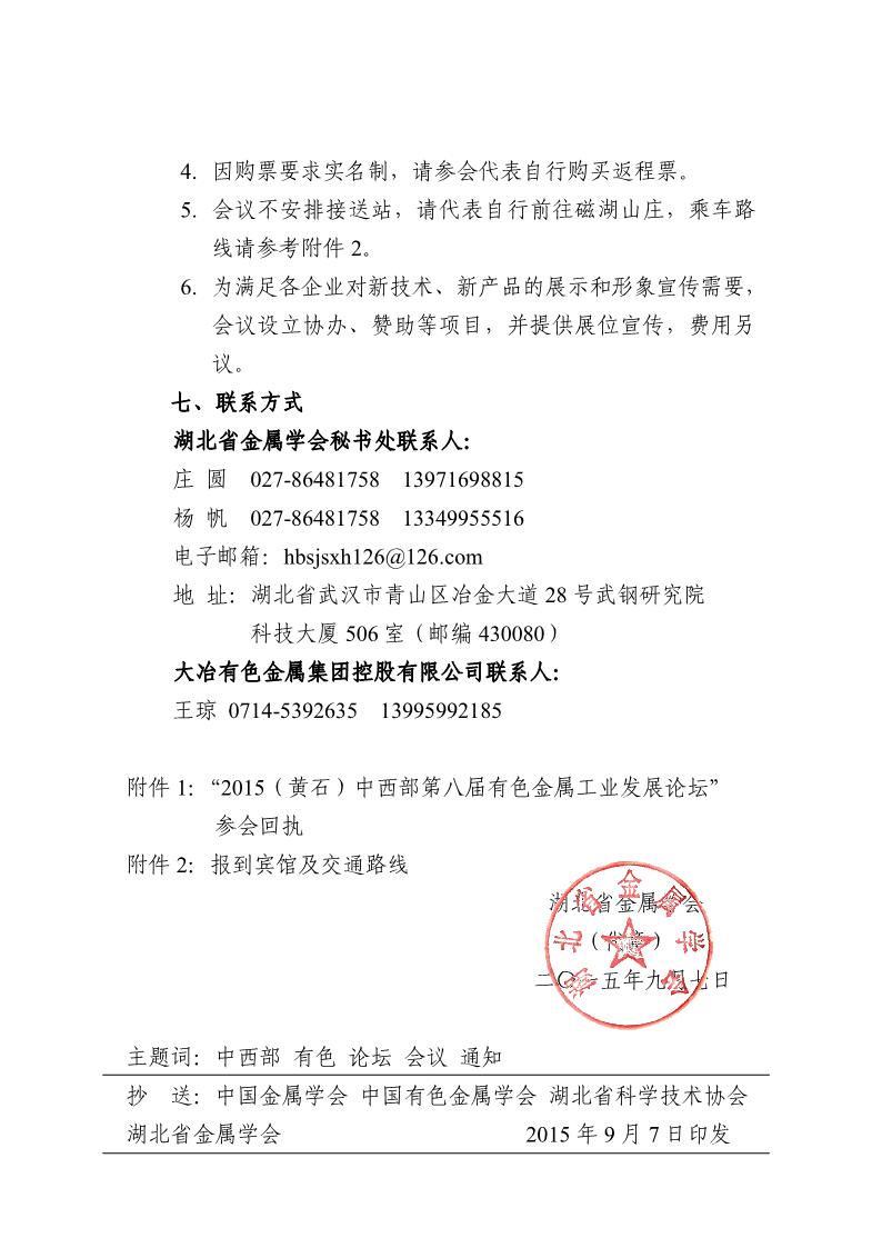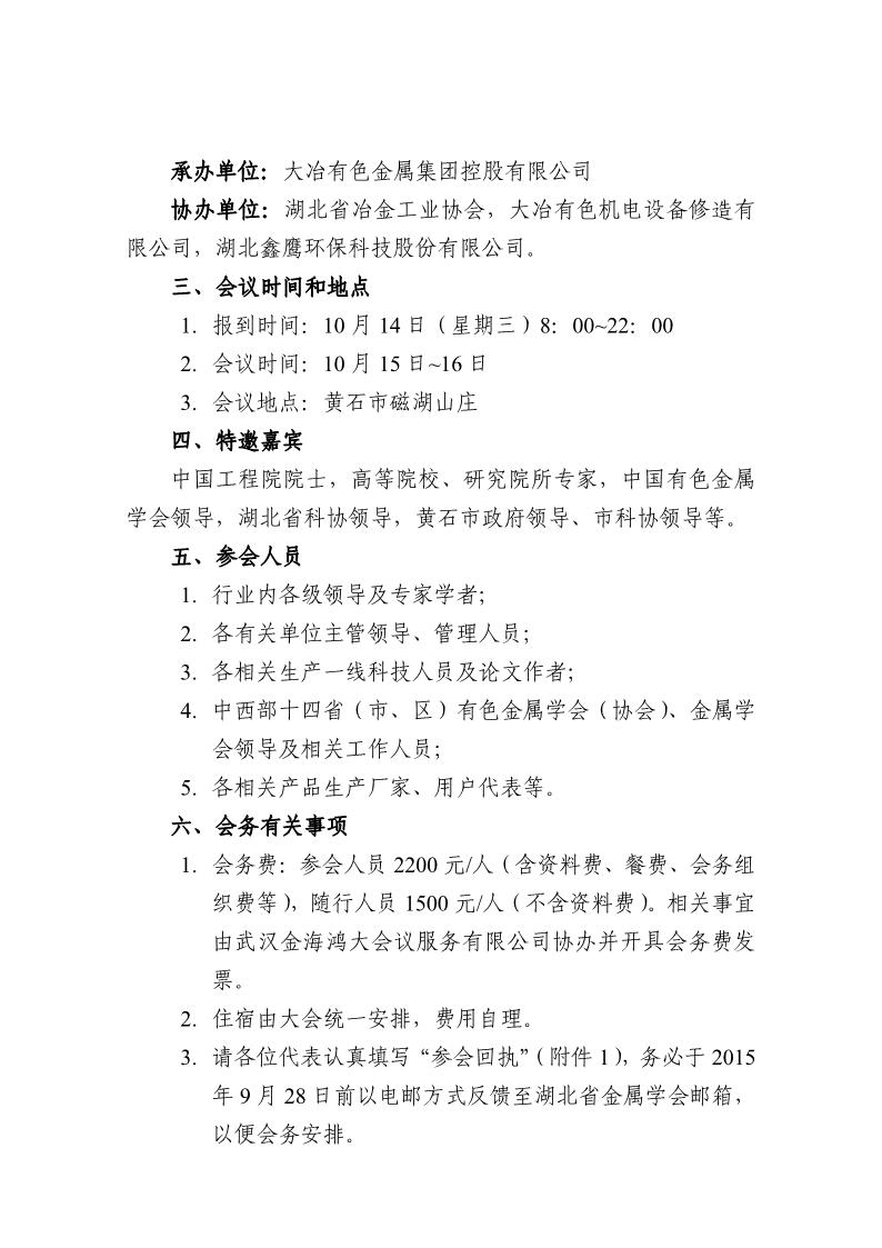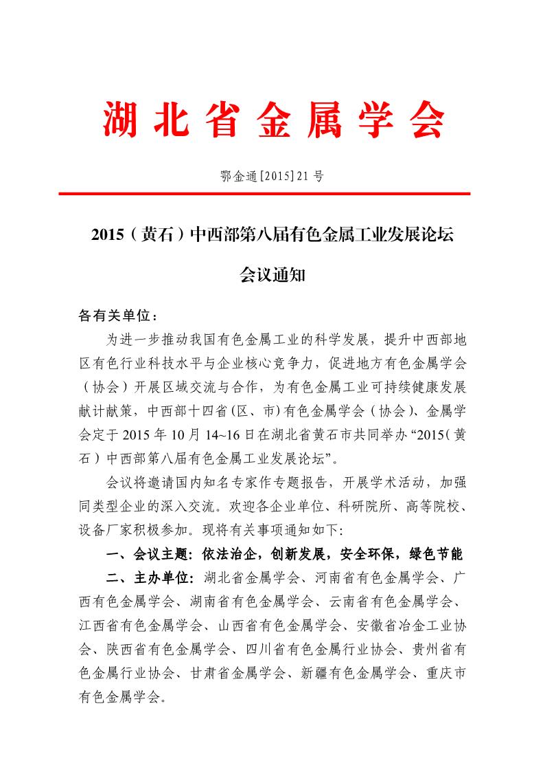 2015(黄石)中西部第八届有色金属工业发展论坛会议通知