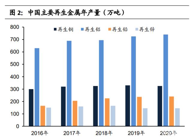 再生金属是供应端重要一环。根据中国有色金属工业协会数据,“十三五”期间,我国再生铜、再生铝、再生铅、再生锌产量分别约为同期原生金属产量的 35%、20%、42%、25%。