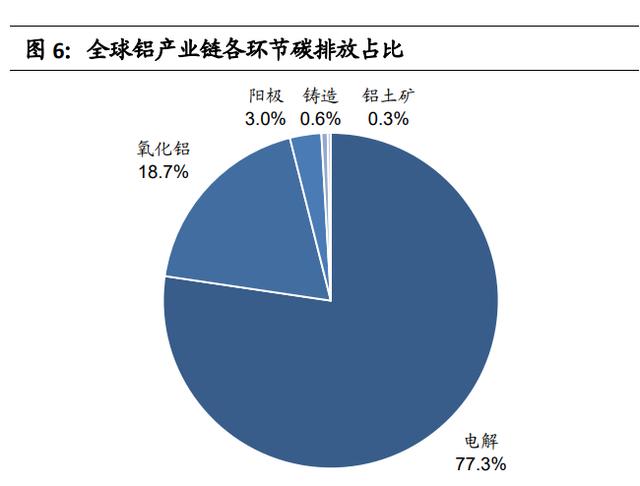 铝行业降低碳排放须扩大再生铝使用。铝产业高排放环节主要在电解过程,再生铝只需将废铝熔融除杂添加合金元素,因此碳排放远小于原铝。根据欧洲铝 业协会的数据,生产 1吨再生铝能耗仅为原铝 5%,仅产生 0.5 吨二氧化碳排放。根据国内的数据,与生产等量的原铝相比,生产 1吨再生铝相当于节约 3.4 吨 标准煤,节水 14 立方米,减少固体废物排放 20 吨。尤其在我国,能源禀赋决 定我国铝行业碳排放高于国外水电丰富的国家。根据安泰科数据,2020 年中国 80%的电解铝生产使用煤电,铝冶炼环节(氧化铝、电解铝、再生铝)的二氧化碳排放量约为 5.25 亿吨,约占有色金属行业排放量的 77%,占全国总排放的 5%。仅依靠增加清洁能源比例难以实现碳中和远景目标,必须增加再生铝使用占比。