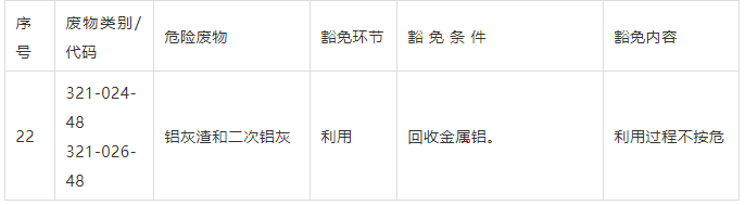 附:国家危险废物名录(2021 年版) 铝灰部分描述