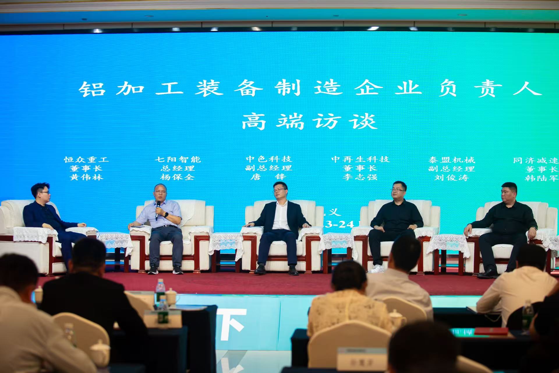 随后,会议进行了铝加工重点企业装备管理负责人以及装备制造企业负责人高端访谈。大家围绕当前的铝加工装备技术发展热点和难点问题展开深入的交流与探讨,内容包括节能降碳、智能化、装备升级改造、进口设备国产化、环保绩效分级、关键装备技术开发和应用、企业品牌建设、开拓国际市场和再生铝设备等多个方面。