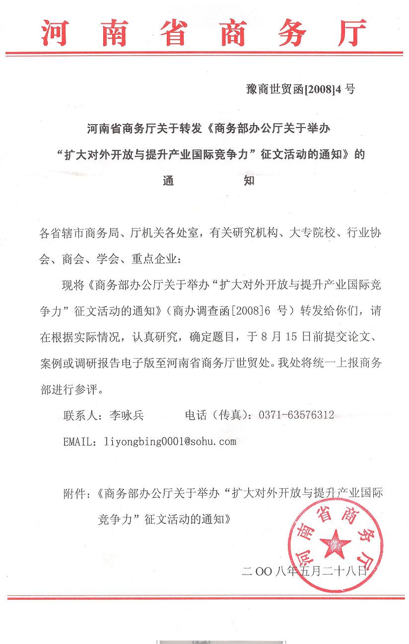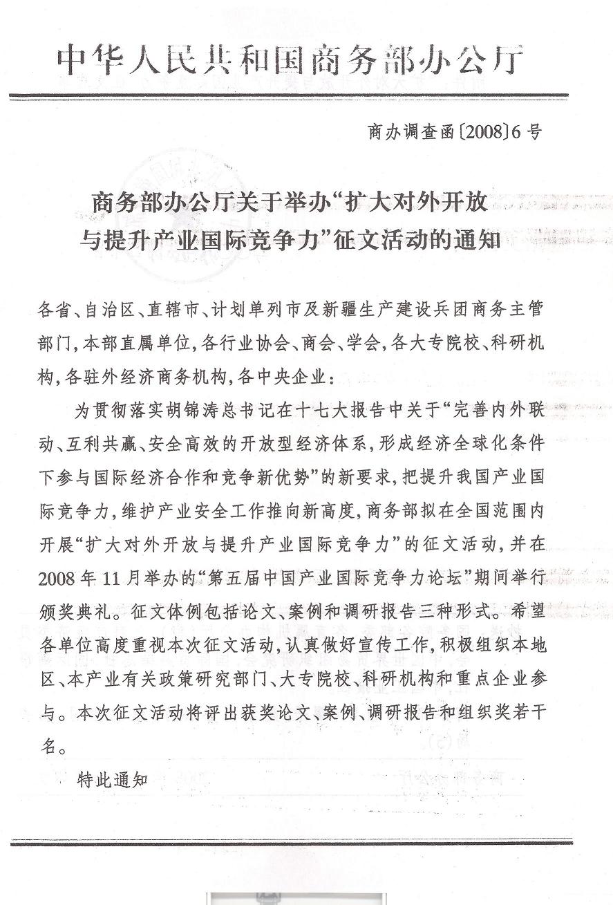 转发商务厅关于举办“扩大对外开放与提升产业