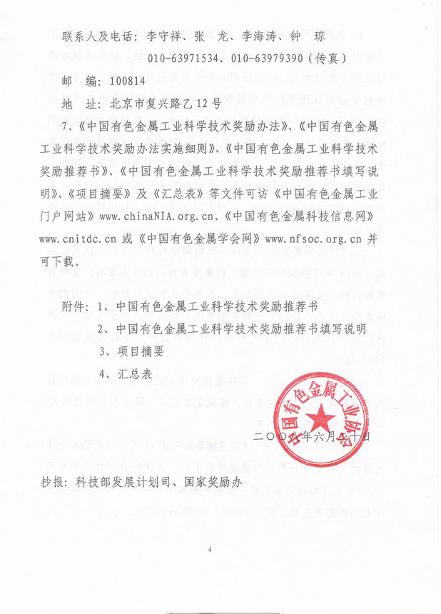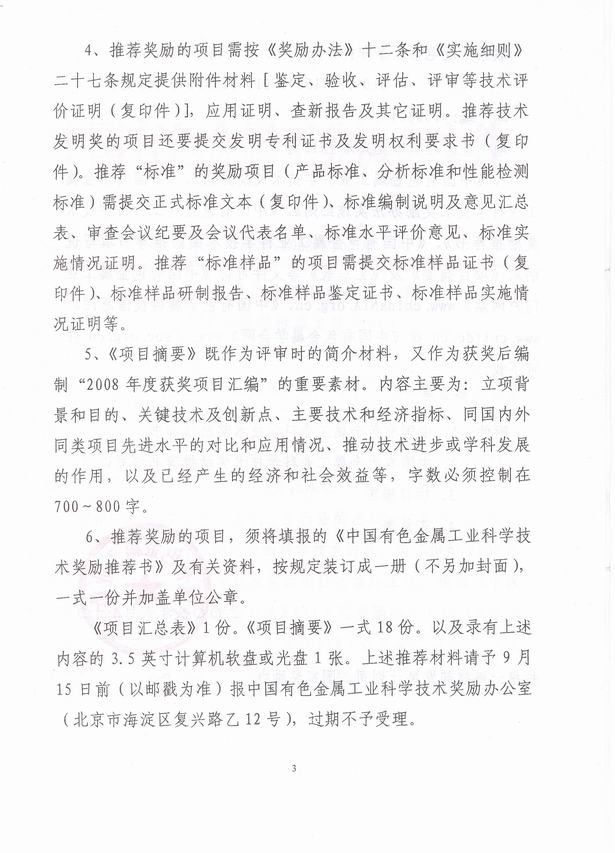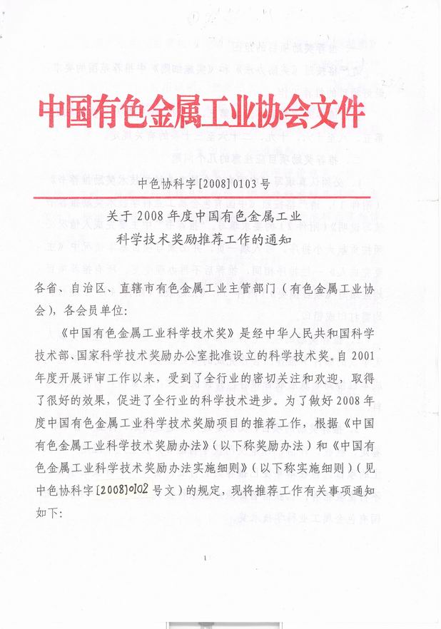 2008年度中国有色金属工业科技奖励推荐工作的通