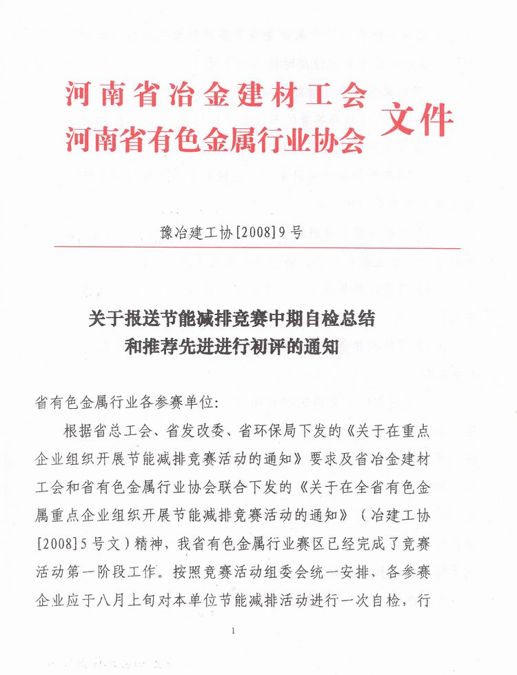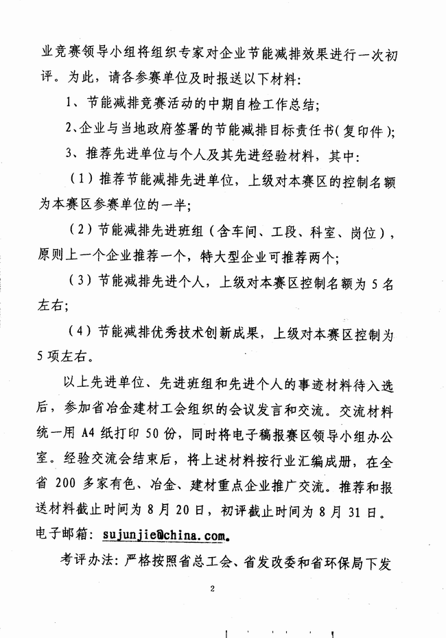 报送节能减排竞赛自检总结和推荐先进进行初评