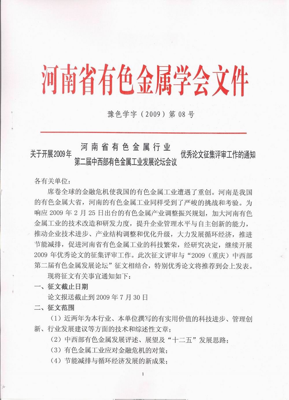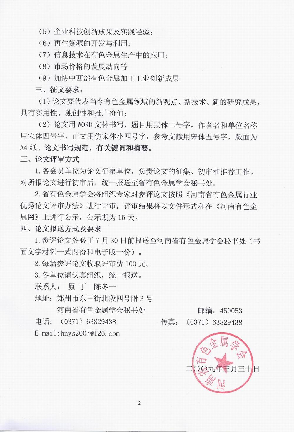 2009年有色行业优秀论文征集