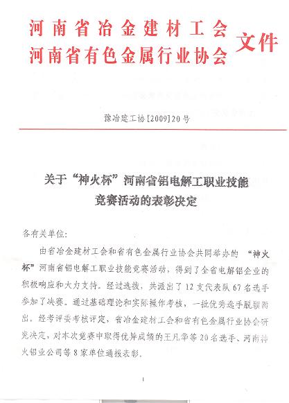 "神火杯”河南省铝电解共职业技能竞赛活动的
