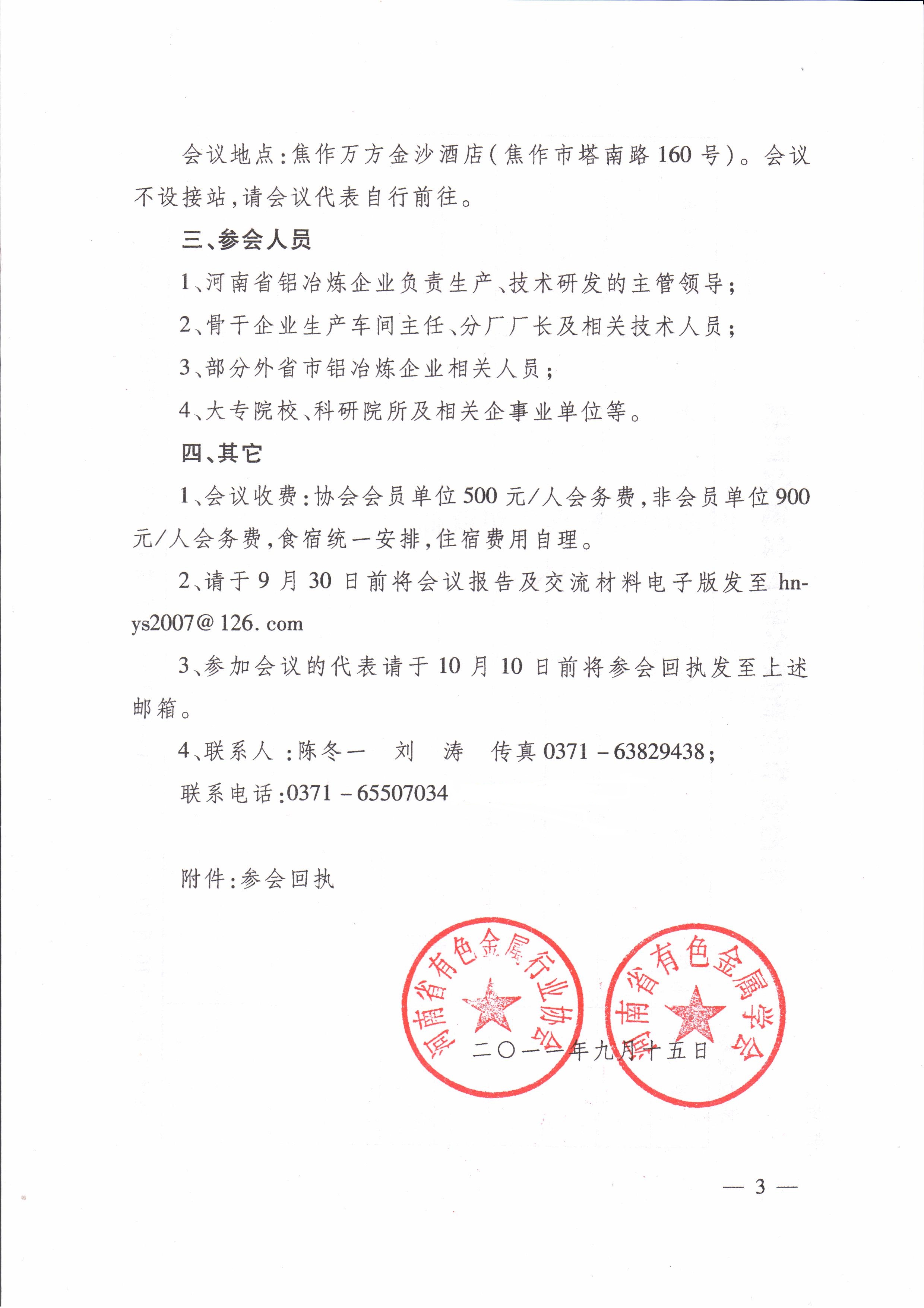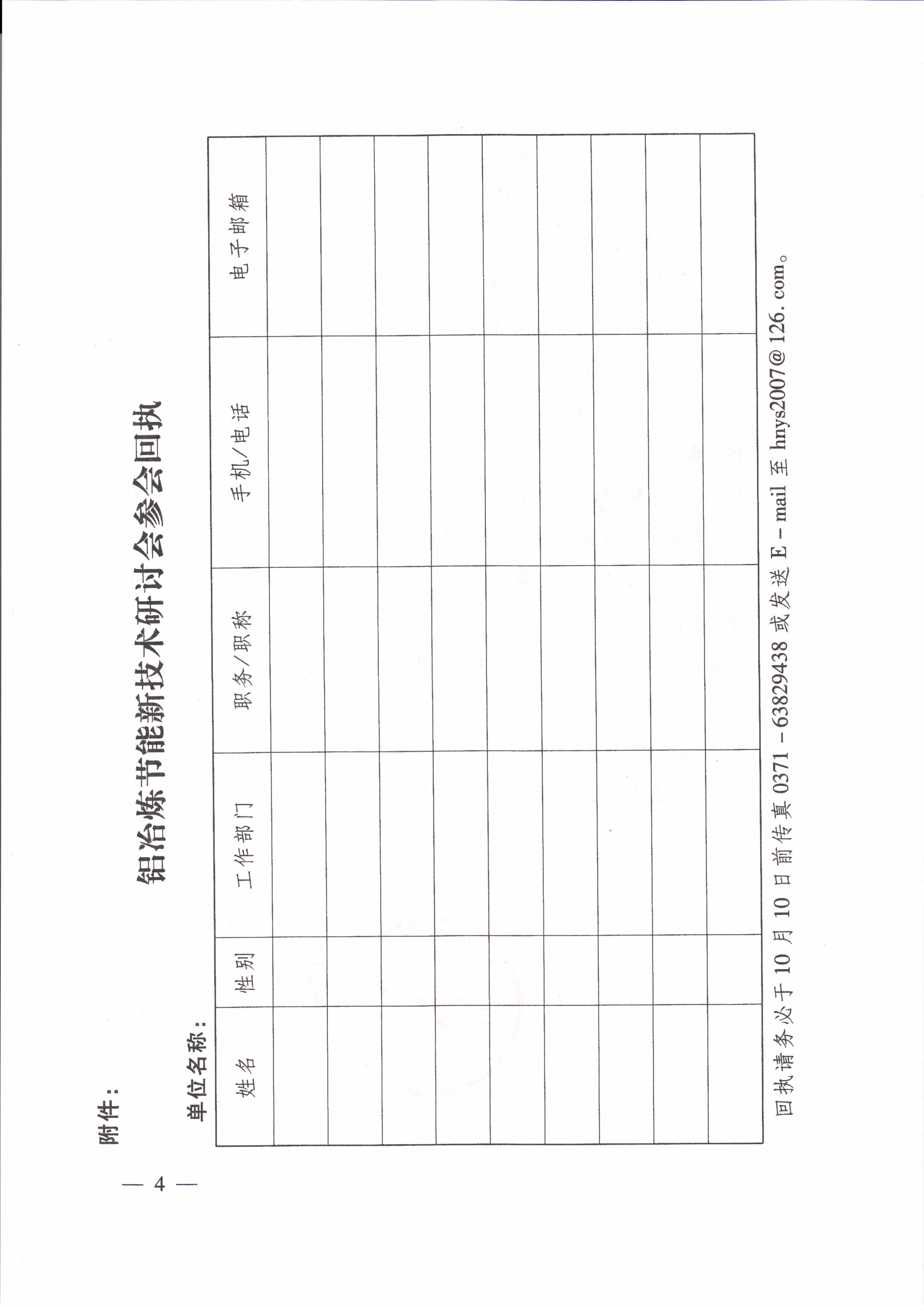 铝冶炼节能新技术研讨会参会回执