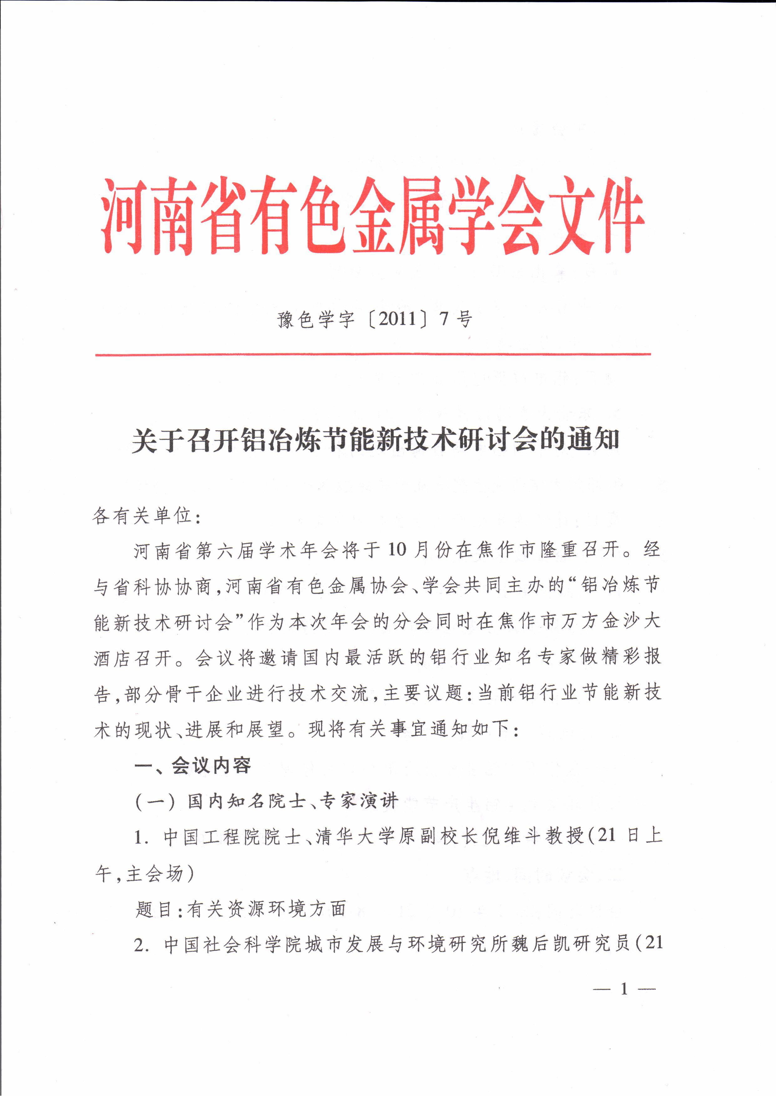 关于召开铝冶炼节能新技术研讨会的通知