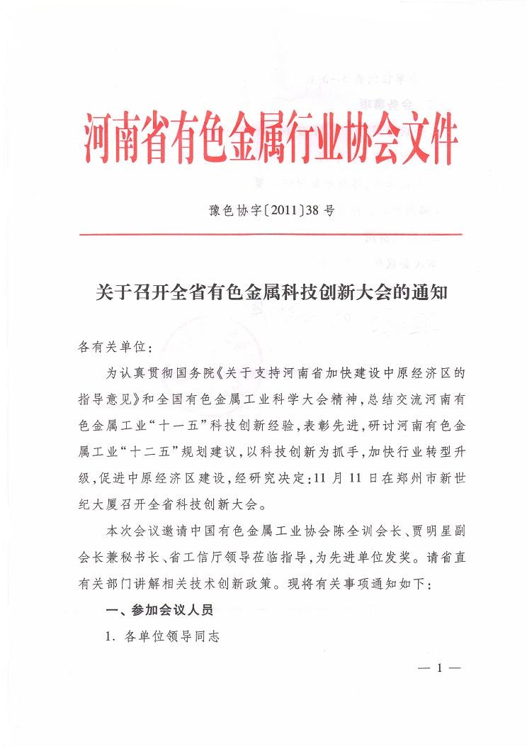 关于召开全省有色金属科技创新大会的通知