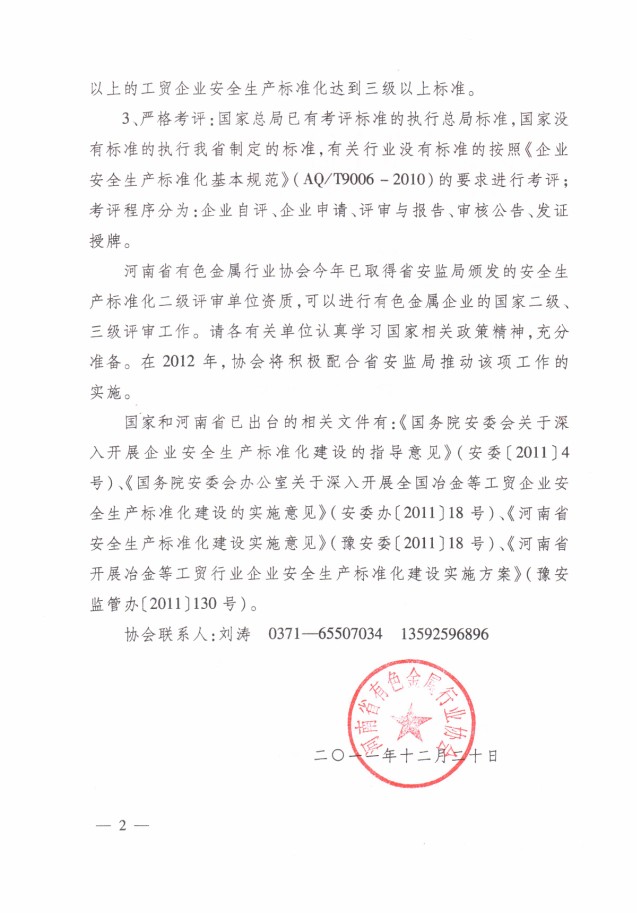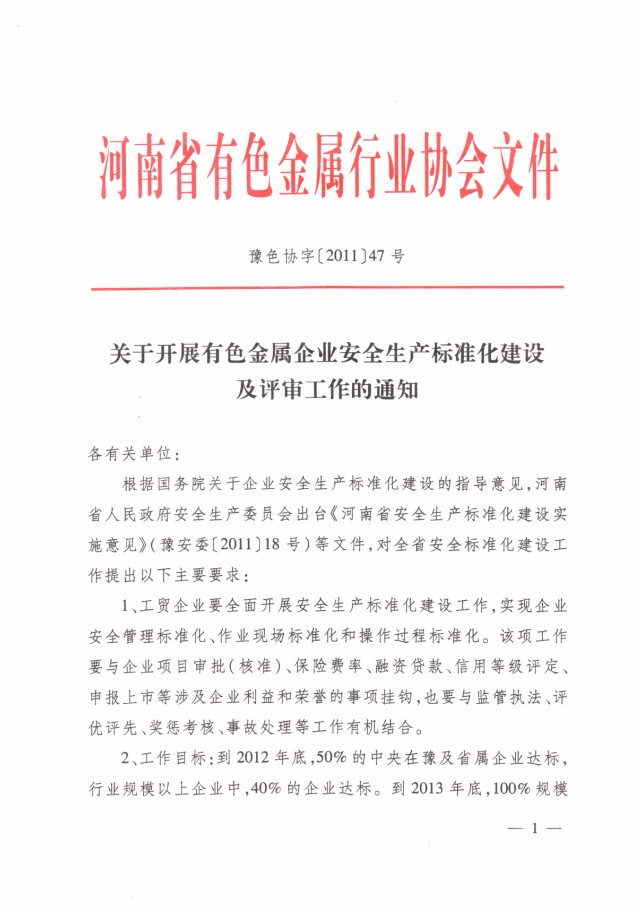 关于开展有色金属企业安全生产标准化建设及评审工作的通知