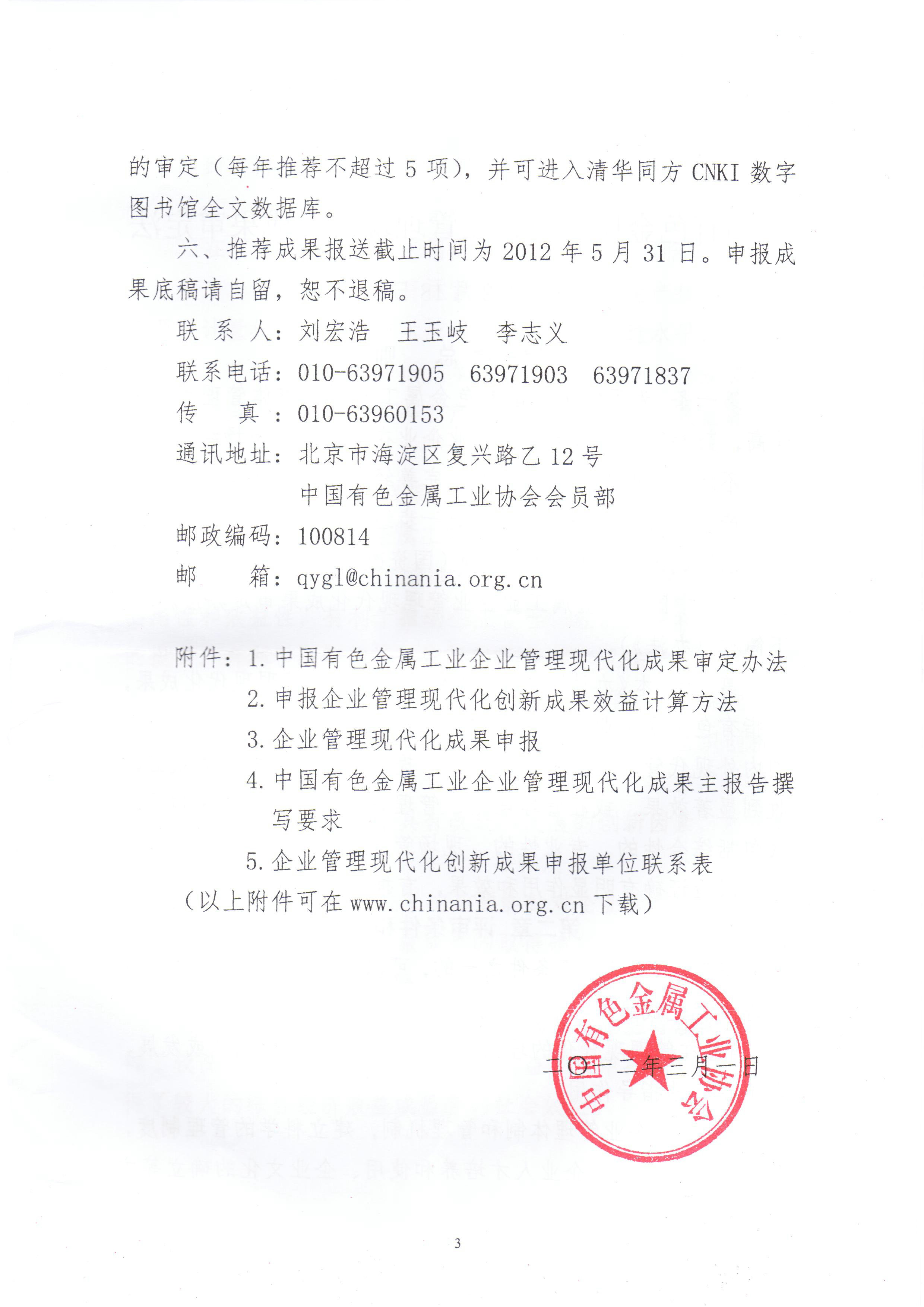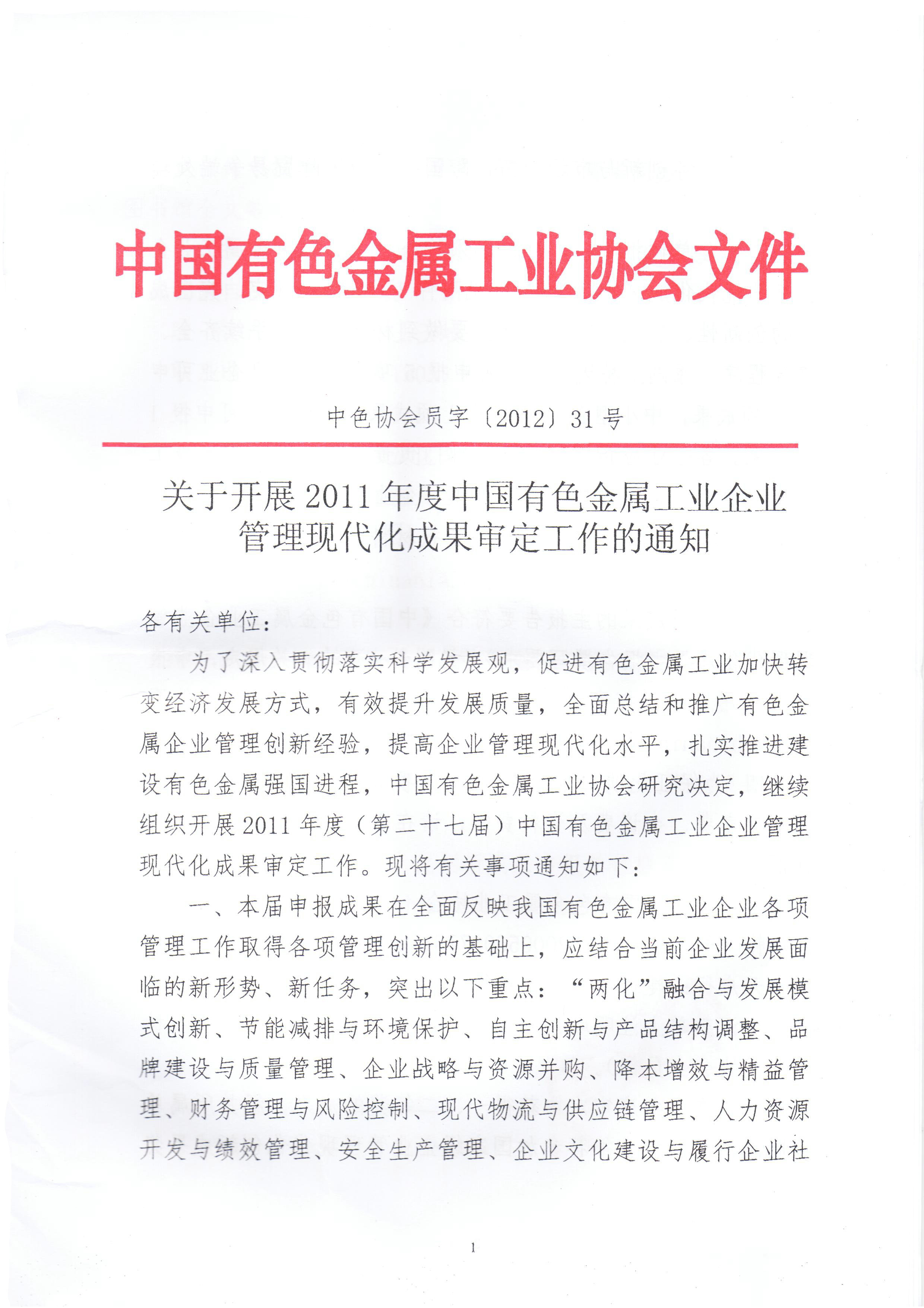 关于组织开展2011年度中国有色金属工业企业管理现代化成果审定工作的通知