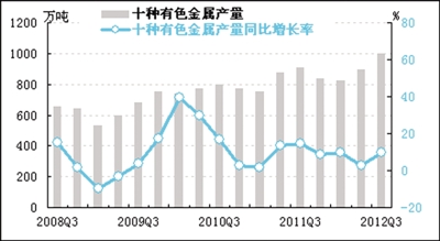 三季度,有色金属价格延续上半年回落态势,而且降幅有所扩大。不过,这种下降趋势在9月份有所改变。9月份,欧美相继推出量化宽松货币政策,充裕的流动性推高了有色金属的价格预期;同时国内稳增长政策实施力度的加大,推高了市场对于有色金属需求的预期,价格随之企稳反弹。但也应看到,市场流动性的充裕对于黄金等贵金属的影响更大,基本金属价格走势还需要看需求端的改善情况。