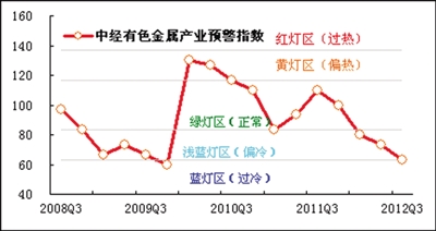 三季度,中经有色金属产业景气指数为97.7,较上季度下降0.2点;中经有色金属产业预警指数为63.3,较上季度下降10点。