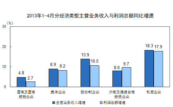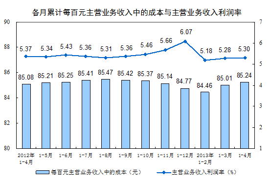 1-4月份全国规模以上工业企业实现利润16106.9亿元,比去年同期增长11.4%,增速比1-3月份回落0.7个百分点。4月当月实现利润4366.8亿元,比去年同期增长9.3%。