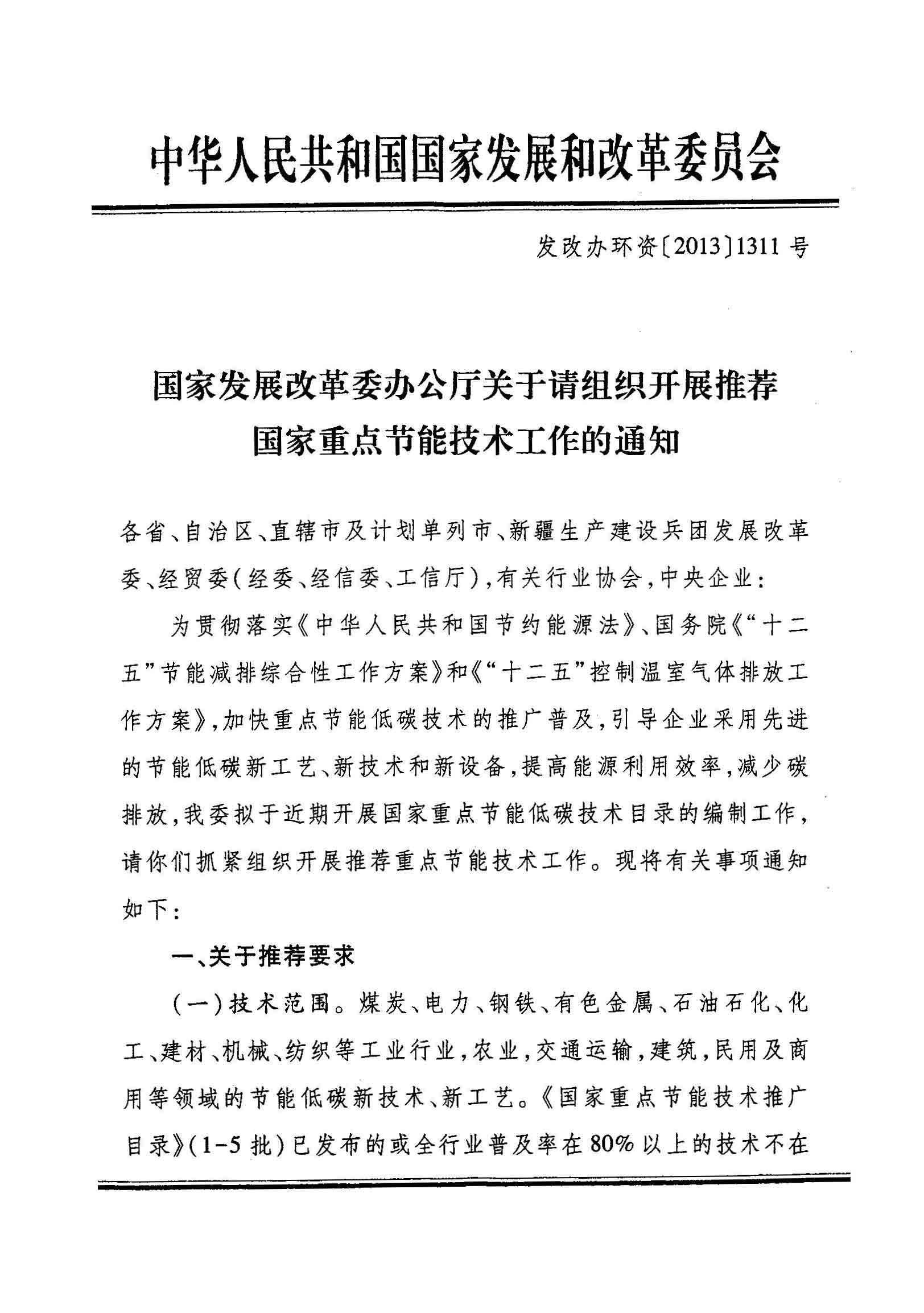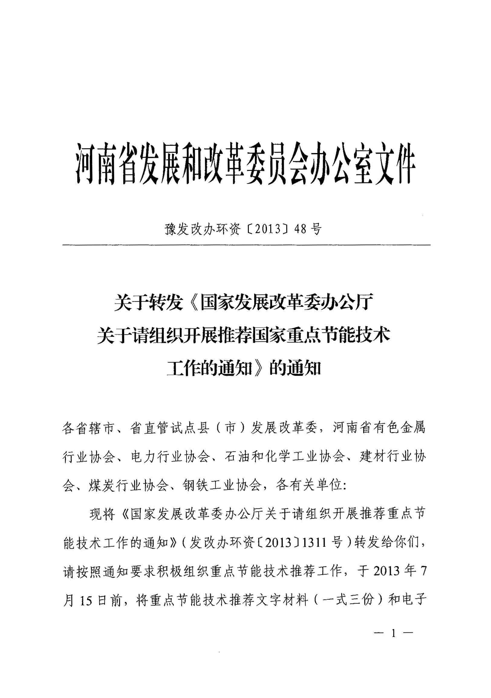转发《关于转发<国家发展改革委办公厅关于请组织推荐国家重点节能推广技术工作的通知>》的